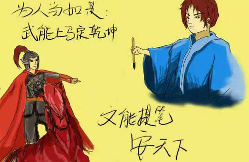 “文能提笔安天下,武能上马定乾坤”,这是出自罗贯中《三国演义》里对蜀汉将领姜维的评价。意思是”文能对内有治理政务的宰相之能,武能对外有带兵打仗的将帅之才“。比喻文武双全的人。