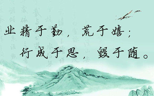 “业精于勤,荒于嬉;行成于思,毁于随”,出自唐代韩愈的《进学解》。意思是“学业由于勤奋而精通,由于玩乐而荒废;德行由于独立思考而有所成就,由于因循随俗而败坏”。