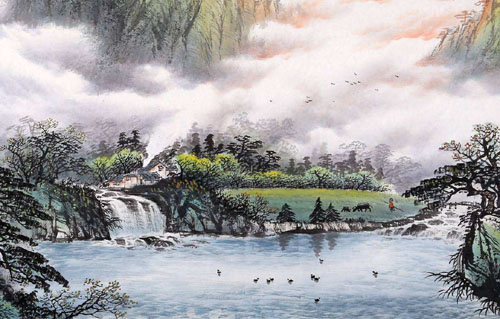 “远看山有色,近听水无声”,出自唐代王维的《画》。意思是“远看高山色彩明亮,走到近处却听不到水的声音。”。![]() 远看山有色,近听水无声。 春去花还在,人来鸟不惊。 鉴赏: 此诗描写的是自然景物,赞叹的却是一幅画。前两句写其山色分明,流水无声;后两句描述其花开四季,鸟不怕人。四句诗构成了一幅完整的山水花鸟图。全诗对仗工整,尤其是诗中多组反义词的运用,使其节奏清晰,平仄分明,韵味十足,读着琅琅上口。全诗读起来似乎行行有违自然规律,其实正是暗中设谜,写出了画的特点。 |