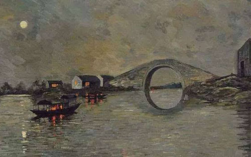 “月落乌啼霜满天,江枫渔火对愁眠”,出自唐代张继的《枫桥夜泊》。意思是“月亮已落下乌鸦啼叫寒气满天,江边枫树与船上渔火,难抵我独自傍愁而眠。”。![]() 月落乌啼霜满天,江枫渔火对愁眠。 姑苏城外寒山寺,夜半钟声到客船。 鉴赏: 张继途经寒山寺时写下这首羁旅诗。此诗精确而细腻地描述了一个客船夜泊者对江南深秋夜景的观察和感受,勾画了月落乌啼、霜天寒夜、江枫渔火、孤舟客子等景象,有景有情。此外,这首诗也将作者羁旅之思,家国之忧,以及无归宿的顾虑充分地表现出来,是写愁的代表作。全诗句句形象鲜明,可感可画,句与句之间逻辑关系又非常清晰合理,内容晓畅易解。 |