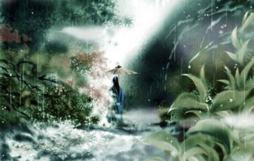 “烟水茫茫,千里斜阳暮。山无数。乱红如雨。不记来时路”,出自宋代秦观的《点绛唇·桃源》。意思是“烟水茫茫,笼罩在夕阳的余辉里。两岸重峦叠嶂,晚风吹来,落花如雨,竟然不记得来时走过的路了。”。![]() 醉漾轻舟,信流引到花深处。尘缘相误,无计花间住。 烟水茫茫,千里斜阳暮。山无数,乱红如雨。不记来时路。 鉴赏: 此词上片写词人醉中想象自己泛舟进入桃花源,醒后因身受羁绊而抱恨,隐寓向往仙境而天涯无路的苦境;下片择取人世间的四种凄凉景象,来影射词人黯淡、感伤的心境。起笔寓情于景,境界清丽;接着忽而转折,情辞悲苦;过片承上深入,浑化无迹,景点惨淡;结末景语淡出,情辞凄楚。全词委曲含蓄,耐人寻味。 |
