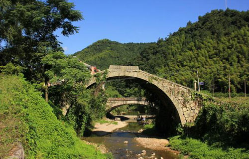 “小桥横截,缺月初弓”,出自宋代辛弃疾的《沁园春·灵山齐庵赋时筑偃湖未成》。意思是“小桥横架在急流之上,像不圆的月亮和刚拉开的弓”。![]() 叠嶂西驰,万马回旋,众山欲东。正惊湍直下,跳珠倒溅;小桥横截,缺月初弓。老合投闲,天教多事,检校长身十万松。吾庐小,在龙蛇影外,风雨声中。 争先见面重重,看爽气朝来三数峰。似谢家子弟,衣冠磊落;相如庭户,车骑雍容。我觉其间,雄深雅健,如对文章太史公。新堤路,问偃湖何日,烟水蒙蒙? 鉴赏: 此词上片描写灵山总体环境之美,下片抒写自己处于自然中的感受。全词极少实写山水的具体形态,而是用虚笔传神写意,表达出作者对山水的热爱之情。 |