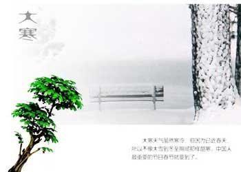 大寒是我国二十四节气最后一个节气,过了大寒,又迎来新一年的节气轮回。 人们常说“大寒年年有,不在三九在四九”,言外之意,大寒已非常冷。实际上,大寒仅与小寒相对,它们都是表征天气寒冷程度的节气,有的地区大寒温度并不比小寒温度低,大寒仅表明了古人看待寒冷气候变化的一种趋势。“大寒为中者,上形于小寒,故谓之大……寒气之逆极,故谓大寒。”(《授时通考·天时》引《三礼义宗》),这时寒潮南下频繁,是我国大部分地区一年中的最冷时期,风大,低温,地面积雪不化,呈现出冰天雪地、天寒地冻的严寒景象。 大寒时节,我国南方大部分地区平均气温多为6℃至8℃,比小寒高出近1℃。 “小寒大寒,冷成一团”的谚语,说明大寒节气也是一年中的寒冷时期。 大寒是一年中雨水最少的时段。 常年大寒节气,我国南方大部分地区雨量仅较前期略有增加。 华南大部分地区为5至10毫米,西北高原山地一般只有1至5毫米。