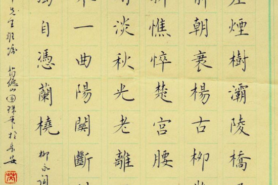 楷书的笔画有提顿、藏露、方圆、快慢等多种用笔方法,用笔不同产生的形态、线条质感也会不同。并且不同的线条需要用不同的笔法去体现。如果用笔达不到要求,笔画就会给人软弱无力、僵硬死板的感觉。