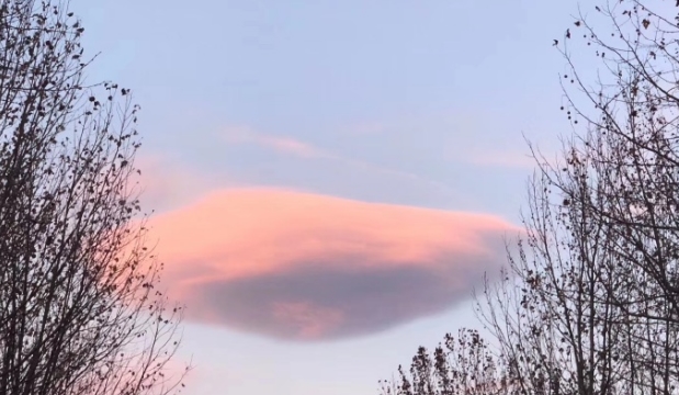 飞碟云是怎么形成的 这就是一种犹如飞碟形状的云朵,主要是以透镜形状出现在高空中,一般都是在顺风的右侧,有人会觉得这是不明飞行物,但其实形成的理由。绝大部分在形成时主要是出现在湿润气候,是和潮湿空气的流动有关,在大型的背风波出现之后,自然就会形成飞碟云。如果是温度正处于下降的阶段,并且低于露点,那么空气中的水分自然就会逐渐的凝结,慢慢的就会形成飞碟云。