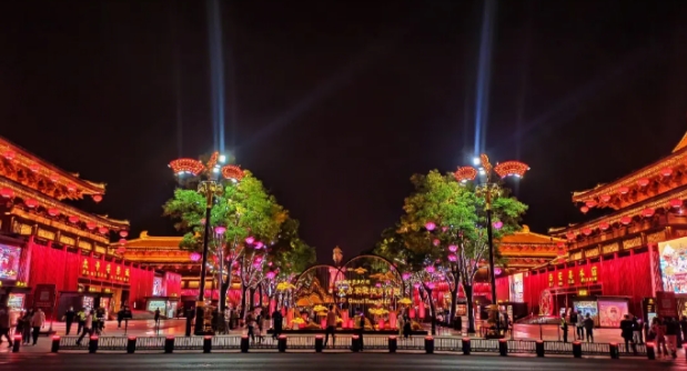 大唐不夜城的主要景点介绍 大唐不夜城是一个景观步行街,大概是在1500米左右,会直接横贯南北,在这里会有许多的主题,包括英雄故事,包括历史人物,包括盛世帝王。在这里能够有效展现大唐帝国在科技,在文学,在艺术在宗教方面的地位,能有效体现出大国的气派。在这一个景点是以大雁塔作为依托,会包括三个主题广场,6个仿唐街区,还有四大文化建筑。每当夜晚来临时,这里灯光璀璨,气势恢宏,流光溢彩,就仿佛是重现大唐盛世一般。另外这里还有无数的网红玩法,对年轻人而言是一大诱惑力,可以利用大场景的装置打造时尚动感的企业,会有梦幻感,会有科技感,还能够启发孩子的创造力以及想象力,慢慢的就变成亲子游玩的好场所。