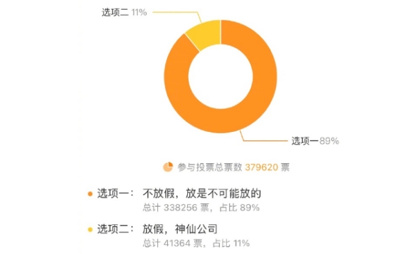 这也从侧面说明了现如今的企业舍不得给员工哪怕是多放一秒的假期,真正能够给青年人群放假的公司占少数,但是按照相关的规定,对年满14周岁到28周岁的人群可放假半天。五四青年节源于1919年的五四运动, 是中国青年的一个重要纪念日。然而,最近一项调查显示,近九成的网友表示他们不支持五四放假。这个结果引起了许多人的关注和探讨,原以为放假才会是多数,没想到只有1成人群表示会放假。