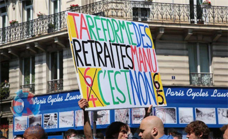 为了**退休制度的改革。4月15日的时候法国总统将退休的年龄从62岁提高至64岁。在今年的九月就开始生效,从而受到广大民众的**。在五一劳动节期间,法国爆发大规模**,有78.2万人参加了这次*行。好几个地方还发生了暴力冲突,大约有108名警察受伤。