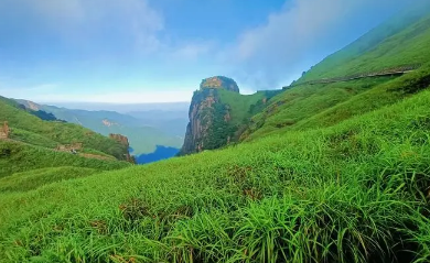 2023年武功山五月下旬草绿了吗武功山五月下旬草绿了,毕竟就往年的情况看武功山五月中旬到六月中旬去比较好,草甸一片一片都已经非常绿了,七八月登山的时候就有点热了;金秋时节去也是非常惬意的,草是一片金黄的;冬天如果下雪的话可以看到白色武功山。
