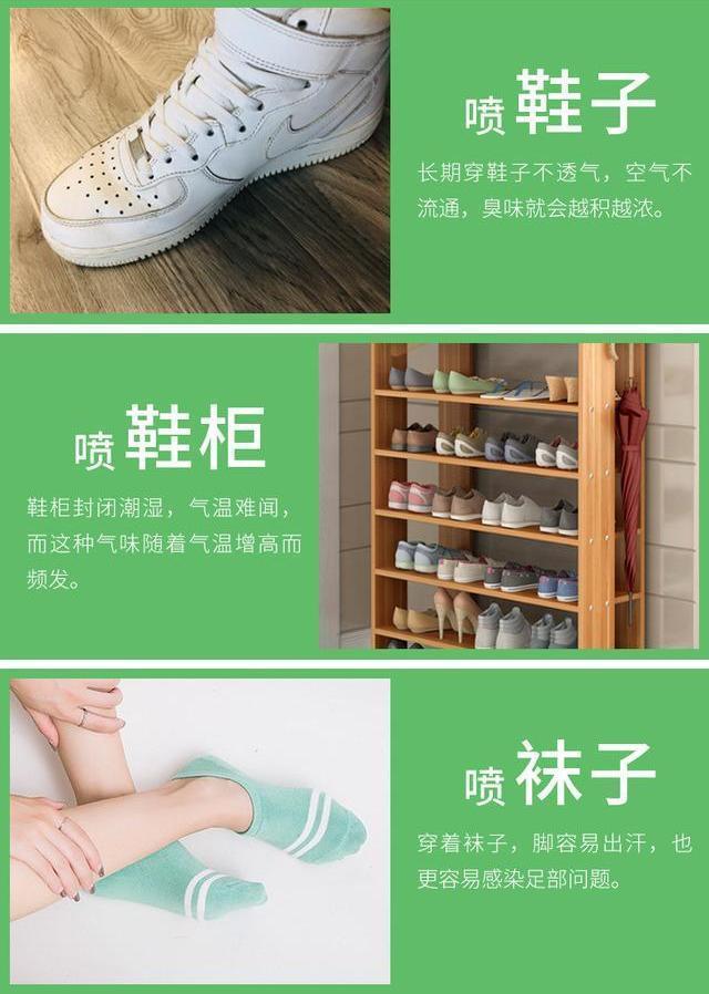 它可以渗透到鞋纤维的内部,分解并消除鞋子的气味!喷鞋和喷鞋柜,用途广泛,一瓶可喷800次。