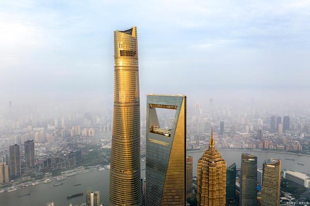 只有阻尼器自然不够,工程师还给整栋大楼都穿上了玻璃外衣,可别小瞧了这些玻璃,它们牢牢的挂在外层钢结构上,每上升一层,玻璃就会横向扭曲一度,那127层就约有120度了,远远望去上海中心大厦就像一条扶摇直上的青龙,十分壮观。 但这样设计可不只是为了好看,有数据显示,这个造型可抵消24%左右的风力。除此之外,上海中心大厦还创造了无数个世界之最,比如,它拥有世界最快的电梯和世界最高的博物馆,还是世界上最大的绿色摩天大楼。诶?绿色摩天大楼是什么意思?难道玻璃的颜色是绿的?感兴趣的朋友请接着往下看。 说到中国高楼,很多人会想到绰号注射器、开瓶器和打蛋器的上海三兄弟,它们分别是金茂大厦、环球金融中心和上海中心大厦,其中上海中心大厦不仅是我国的第一高楼,还是出了名的低碳环保。