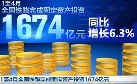 这个数据表明,中国铁路建设引领着中国基础设施建设进入了一个崭新的时代。未来几年中,中国将继续投资铁路建设,继续推动铁路现代化进程,促进经济快速发展和社会繁荣。 最新公布的数据显示,国家铁路固定资产投资在今年一季度已经达到了1674亿元,同比增长了6.3%。这是一个令人振奋的消息,标志着中国铁路建设在实现现代化铁路基础设施体系方面迈出了坚实的一步。