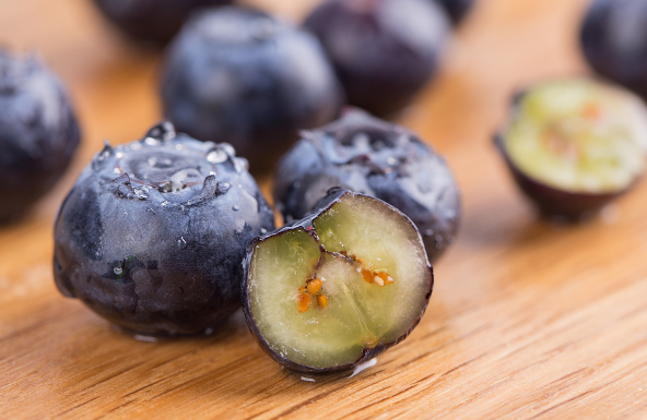 蓝莓的果肉鲜嫩多汁,一口爆浆,吃起来酸甜可口,是比较受欢迎的一种水果,很多人都喜欢吃蓝莓。蓝莓吃之前要清洗干净,一般都是用凉水洗的,也可以用温水洗,但是水温最好不要超过40度。