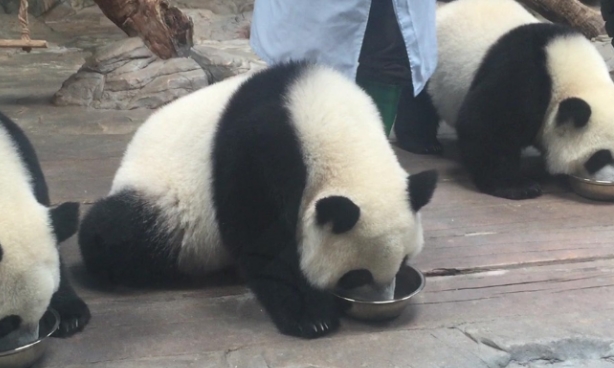 加上大熊猫是一种非常懒惰的动物,它们整天只睡觉和吃饭。通常不需要追逐猎物,所以它们几乎没有什么体力活动。由于日常生活缺乏刺激性,很容易感到无聊和疲惫。吃饭成了它们最喜欢的活动之一,尤其是在自然环境中,那时大熊猫的精神和身体状态都处于极佳状态。