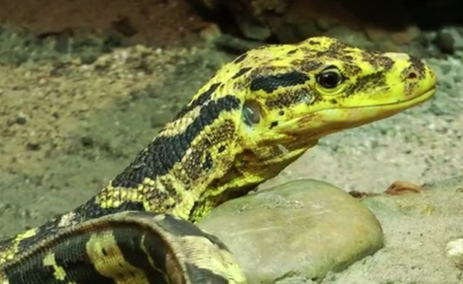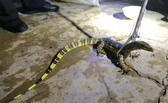 科研人员在位于云南省红河哈尼族彝族自治州绿春县的云南黄连山国家级自然保护区进行野生动物监测工作时,首次发现了这一罕见的国家一级保护野生动物。科研人员介绍,此次发现的圆鼻巨蜥身长约1米,全身为黄褐色,布满了颗粒状鳞片,唾液含有剧毒。经观察,此圆鼻巨蜥无受伤迹象,进食正常,可以直接让其回归大自然。从这个结果可以看出,该保护区的生态环境保护工作得到了很好的发挥。