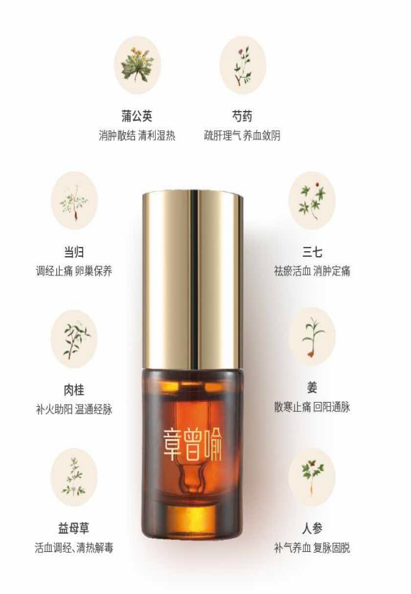以其核心单品草本舒缓液为例。据《中国女性经期健康报告》数据,约61%中国女性在不同程度遭受经期生理疼痛困扰、且受经期不适而扰乱日常计划的比例亦占比近50%;然而,相关经期消费仍围绕即时止痛展开,市场并未进一步提供女性经期困扰的深度解决方案。 因此,章曾喻草本舒缓液在解决“即时舒缓原发性痛经”的刚性需求之上,更致力于通过产品展开日常调理、帮助女性规避原发性痛经带来的不适及造成的日常计划扰乱。“规避疼痛 即时止痛”的全新产品理念,帮助女性更好应对生理周期、7天继续做自己。