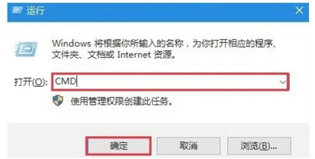 4.如果以上操作无法格式化的话,那么可以用杀毒软件对u盘进行杀毒操作,之后再打开电脑运行窗口,输入CMD点击确定打开命令页面。