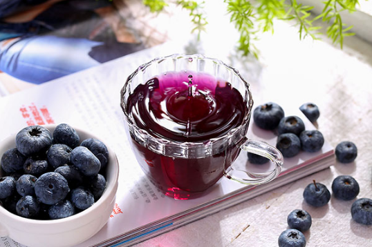 喝蓝莓汁的好处1、蓝莓汁当中富含有一定的维生素A,对于视网膜感光物质补充的作用会非常的明显; 2、蓝莓汁含有丰富的花青素,能够增强抗病能力喝; 3、喝蓝莓汁能够为机体补充维生素C,而维生素C对于提高机体免疫力有着重要的作用。 4、蓝莓汁当中还含有丰富的有机酸,能够很好的促进消化液分泌,以增进食欲。 |