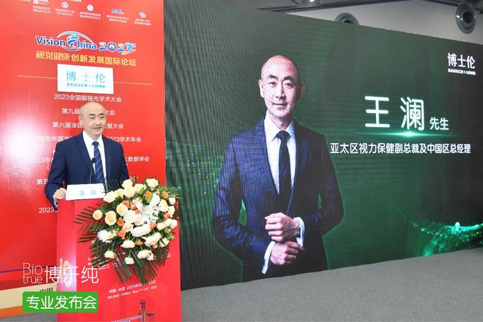 亚太区视力保健副总裁及中国区总经理 首先,王澜先生为发布会致辞,他讲到很高兴博士伦与VisionChina会议一同走过了十届,在4月博士伦隆重发布了全新一代硅水凝胶奥澈日抛产品,今天我们继续携又一新品“博乐纯臻润”走进VC专业发布会,在此特别感谢专家老师们、业内合作伙伴、和广大消费者们对博士伦的信任和支持! 创新是一个民族进步的灵魂,是一个国家兴旺的动力,在激烈的市场竞争中,惟创新者胜,惟创新者强;国家鼓励创新,行业日新月异,我想创新发展也是Vision China大会的主题。博士伦已经有170年历史,进入中国36年,始终在这片热土锐意创新,不断发展。在视力保健领域,博士伦已经拥有全系列的软性隐形眼镜及护理产品,从单纯矫正屈光不正产品、功能性产品到业内第一款眼科治疗用绷带镜;从水凝胶材质,到全球首创人眼仿生科技博乐纯超水胶材质系列产品,再到全新科技的硅水凝胶奥澈系列产品;从最早的“一瓶妥”护理液,到博乐纯润明护理液系列,到极具创新的仿生科技博乐纯护理液系列,诸多高品质的产品受到了全球消费者的青睐。“创新发展”、“发明创造”一直是博士伦辉煌历程中的主旋律,正是博士伦坚持不懈以“清晰视觉、睛彩人生”为宗旨,致力为消费者和患者提供不断创新的产品和服务,博士伦已经成为隐形眼镜的代名词,也成为了世界上知名的眼科医疗保健品牌之一。 在共同发展眼视光精神指引下,我们看到以瞿佳院长吕帆教授带领开拓的中国眼谷,也看到了海南博鳌医疗先行先试特许药械的新政策,博士伦先后与博鳌乐城先行区、温州医科大学眼视光医院、中国眼谷开启战略合作,并成功当选为中国医疗器械行业协会眼科专委会副主任委员单位;为了持续加强行业从业人员的专业教育,博士伦与IACLE和安监会开启合作教育项目,为行业培养和储备专业精英;【博士伦大学】整合行业内外的优质资源,成功探索了商业于教育的融合,搭建了具有前瞻性、创新性、特色行的管理实践类教育体系,17年来投入171场管理培训课程,并于今年4月1日获得中国眼镜行业颁发的“卓越贡献奖”。 未来,博士伦将继续与社会专业力量一起继续共同发展,建立长期稳定、优势互补的战略合作伙伴关系,在品牌、资源、投资、人才、科研等方面开展多元化的深入合作和资源整合,共同推动构建国际一流眼健康全产业链综合体,为中国眼视光筑基强根,长久发展贡献力量。 博士伦与众位大咖嘉宾 共同见证“博乐纯臻润”新品发布! 在本次专场会议中,博士伦专业发布了全新的博乐纯臻润隐形眼镜护理液,延续了博乐纯品牌独特的仿生科技配方,进一步对人眼生态进行了探索,将最新仿生科技成果融入新一代护理液中。