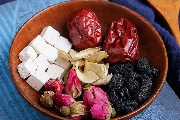 桑葚茶和什么搭配最好1.枸杞: 桑葚可以和枸杞一起泡水喝,桑葚性寒,味甘,枸杞性平,味甘,因此枸杞和桑葚在性味上并不相冲,而桑葚和枸杞的主要成分都是水分,碳水化合物,纤维素、蛋白质、脂肪等,也没有相互反应,降低营养价值的成分,因此可以一起食用,来降低桑葚的寒性。 2.大枣: 大枣富含糖类、胡萝卜素、多种维生素以及矿物质成分。中医认为其味甘,性温,无毒,具有补虚益气、养血安神、健脾和胃等作用,可用于脾虚食少,乏力便溏,妇人脏躁等疾病的治疗。 3.桂圆: 桂圆富含葡萄糖、蔗糖等营养成分,并且中医认为其味甘、性温,归心、脾经,有开胃、养血益脾、补心安神等功效。由于其性温,和桑葚一起泡很适合。 桑葚含有丰富的维生素、氨基酸、花青素等成分,营养价值很高,并且中医认为桑葚入肺、肝、肾、大肠经,具有补肝益肾、生津润肠、乌发明目、止渴解毒、利尿、消暑等功效。但是桑葚属于寒性,使用不当会造成腹泻等不适症状。