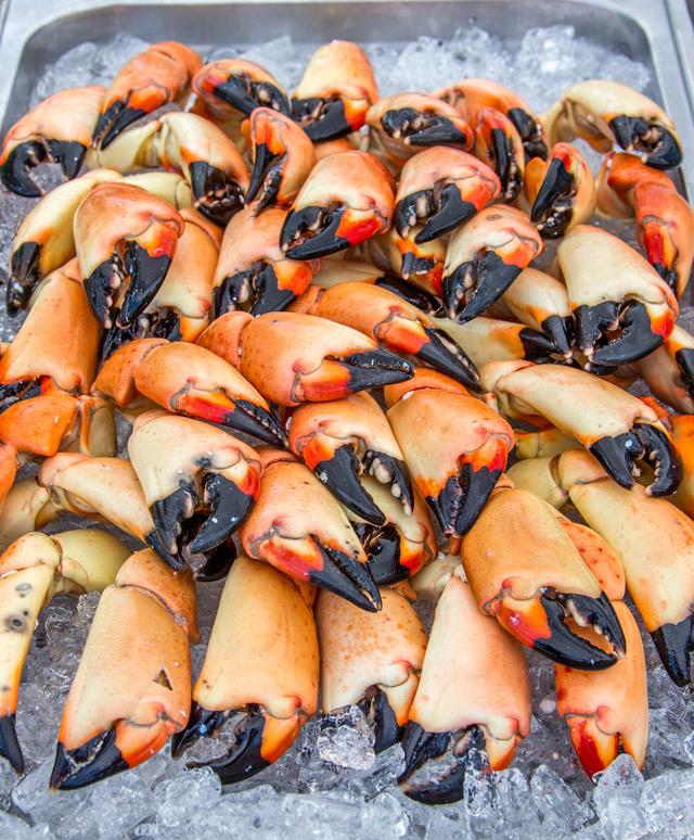 届时,在高档餐厅内,上流人士会拿出法国人吃蜗牛的精细劲儿,先用锤子敲开外壳,再取出蟹肉、沾上酱汁,送进嘴里后,表现出很享受的样子。而发展至今,石蟹俨然成为佛罗里达州的招牌美食,被网红列入“旅行必点清单”。 不过~~大量捕捞的后果就是:石蟹数量递减、濒临灭绝,这可把政府急坏了,他们既不想石蟹从地球上消失,又不愿断送这个赚钱的买卖,于是,便采纳了一位大聪明的主意:将石蟹当韭菜割! 简单说就是利用石蟹钳子的可再生能力,长出一茬吃一茬。但~~被掰掉钳子的螃蟹还能活吗?我们接着往下看。 说出来你可能不信,美国的佛罗里达石蟹有“海中韭菜”之称,渔民将其打捞上来后,会掰掉蟹钳、扔掉蟹身,如此反复、合法赚钱。