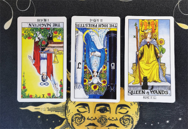 2、由权杖女王、女祭司逆位和魔术师逆位组成 这组牌预示着你的生活即将迎来一个转变或新的开始,可能会带来一则好消息。然而,在过去的一段时间里,你可能感到有些焦虑,甚至开始懈怠。你一直在努力并期待着某个事情的发展,但却没有看到明确的结果。也许这个事情已经停滞不前,让你感到困惑和不知所措。你不想放弃,但也不知道下一步该怎么办。目前,你只能顺其自然,等待时机的到来。尽管如此,你内心依然对这个事情抱有希望。塔罗牌的解读显示,在接下来的日子里,这个事情将会有一个转机。也许关系会得到缓解,交流和沟通会变得正常起来,或者可能会发生一些突发事件,让你重新振作起来,发现一丝希望。所以,你将会收到一个让你兴奋并且开心的好消息。