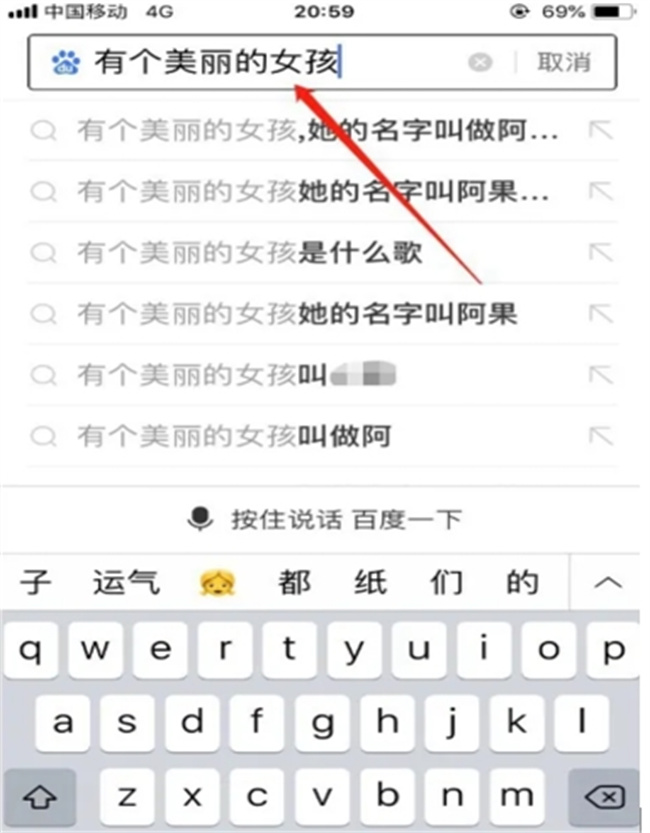 2. 如果是使用百度的话,可以进入后直接打开搜索框,输入自己知道的歌词并点击搜索即可。