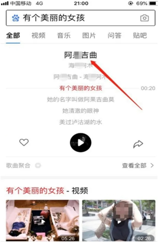 3. 点击搜索后,通常会在选项栏的第一首便是歌曲名字。