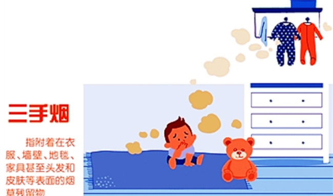 对呼吸系统,肺,心脑血管,胎儿发育产生危害。三手烟是指非吸烟人因经常暴露于吸烟环境中而受到的二手烟“残留物”,如衣服、家具、墙壁等地方残余的烟草化学物质。这些物质会在空气中持续存在,并进入到我们的皮肤和呼吸系统中,给我们的身体和健康造成诸多危害。