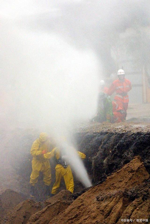 1.迅速堵漏 首先必须想尽一切办法尽快堵漏,防止大量泄漏和大面积扩散。堵漏时应区分泄漏气体的物理特性及泄漏部位,根据具体情况采取以下相应堵漏措施。 (1)停止输送气体或关闭泄漏点相邻部位阀门,切断泄漏源口。 (2)对于管道泄漏或罐体孔洞型泄漏,应使用专用的管道内封式、外封式、捆绑式充气堵漏工具进行迅速堵漏,或用金属螺钉加黏合剂旋拧,也可利用木楔、硬质橡胶塞封堵。 (3)法兰泄漏时,对因螺栓松动引起泄漏的,应使用无火花工具紧固螺栓,制止泄漏。 (4)罐体撕裂泄漏时,由于泄漏处喷射压力大、流速快、泄量大,应迅速利用专用的捆绑紧固和空心橡胶塞加压充气器具进行塞堵。 (5)利用易燃液化气体蒸发潜热特性,用水枪向泄漏处喷水,降低泄漏处压力,并使泄漏处结冰,减少泄漏量,进而堵漏。 (6)必要时进行气体倒罐或输入槽车体进行分流,大风天气,还可打开罐顶放开容器向外排出气体以降低泄漏口压力,防止裂口扩大,减少泄漏量。 (7)少量泄漏可用胶泥、石棉被缠裹泄漏阀门、管道泄漏处,并用橡胶带、绳索或铁丝等箍紧,也可用抱箍夹紧。 (8)可移动压力容器泄漏时,应采取相应堵漏、排空措施进行处置。如迅速将该容器移至安全地带自然排空,并加强防范,杜绝火源。
