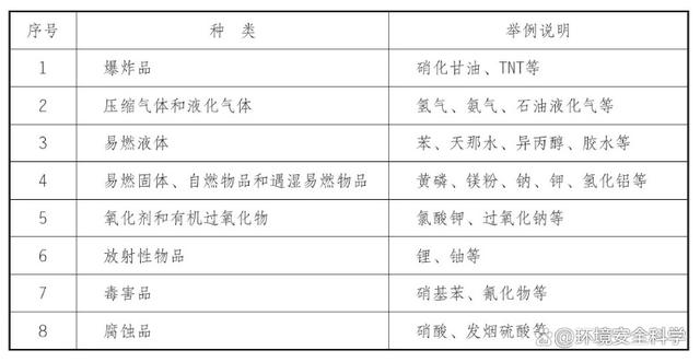 2.危险化学品的种类 危险化学品的种类,根据其危害特性可分为以下八大类,见表。