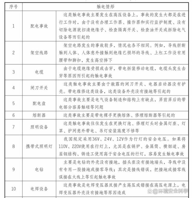 2.常见的电气设备触电事故 电气设备的种类很多,发生触电事故的情况是各种各样的,这里只把常见的、多发性的电气设备触电事故归纳见表。