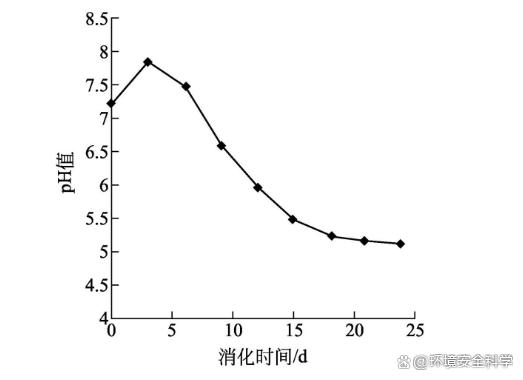 在不导致微生物变性的前提下,污泥活性随着温度的升高而增高,其消化效果越好。因此,在一定初始污泥浓度条件下,一般温度每增加10℃,达到一定消化效率所需的时间将会缩短1/2。 (2)pH值 在污泥消化过程中,系统的pH值会随着含氮有机物的氨化作用和氨态氮的 硝化作用 而上下波动。 从图上可以看出,pH值随着消化时间的延长,呈现“上升—下降—接近平稳”的变化趋势。在消化开始的3~5d内达到峰值,然后开始逐渐下降,在好氧消化进行到15d以后,pH值趋于平稳,在4.8~5.1。