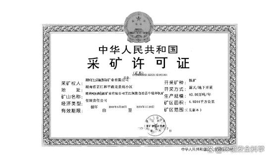 《采矿许可证》(图2)是采矿权人行使开采矿产资源权利的法律凭证。由采矿登记管理机关颁发的,授予采矿权申请人开采矿产资源的许可证明。采矿许可证由国务院国土资源主管部门统一印制,由各级国土资源主管部门按照法定的权限颁发。采矿许可证的主要内容包括:矿山企业名称、经济性质、开采主矿种,以及共(伴)生矿产、矿区立体范围、有效期限等。采矿许可证不得买卖、涂改、转借他人。采矿许可证可以依法延续、变更和注销。采矿许可证遗失可以向原发证机关申请补办。 3.《爆炸物品使用许可证》(www.ws46.cOm)
