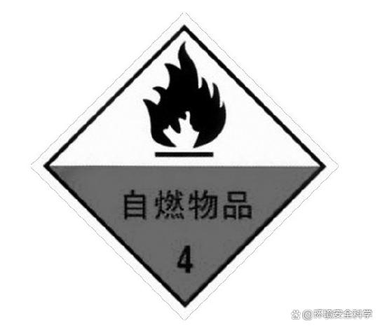 ②图案颜色。符号:黑色或白色;底色:正红色。 ③用途。用于货物外包装上。表示包装体内为易燃性固体、燃点较低,即使不与明火接触,也会因受热、冲击或摩擦以及与氧化剂接触时,能引起急剧的燃烧或爆炸的物品。例如,电影胶片、硫黄、赛璐珞、炭黑等产品。 (7)自燃物品标志 ①图形。