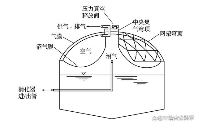 消化池的顶罩的作用在于气体收集、减少臭气、保持内部恒温、维持厌氧条件。此外,罩子还可支撑搅拌设备,深入水池内部。消化池顶罩有固定罩、浮动罩和浮动集气罩3种基本形式。