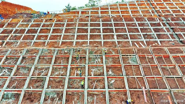 锚杆(索)一般有锚头、拉伸段及锚固段三部分组成。锚头在锚杆(索)的外面,它的作用是给锚杆(索)施加作用力。拉伸段在孔内,其作用是将锚杆(索)获得的预应力(拉应力)均匀地传给锚杆孔的围岩,增大弱面上的法向应力(正应力),从而提高抗滑力。对于坚硬而又较破碎的岩石,锚杆的预应力可使锚杆孔围岩产生压应力,从而增大了破碎岩块间的摩擦阻力,提高了围岩的抗剪强度。对于非预应力锚杆,只在安装完后锚杆受拉时,将应力均匀地传给围岩。锚固段在锚杆(索)孔的孔底,它的作用是提供锚固力。 锚杆在安装时,由于孔与弱面之间的夹角不同,锚杆所起的作用也不同,因此,应该寻求一个最合理的位置,让锚杆发挥最大的作用。 为保证锚杆(索)加固边坡的效果,在每两根锚杆(索)之间布设钢筋混凝土横梁,并在锚头和横梁上挂设钢丝网,然后在钢丝网上喷上水泥浆,以防止边坡碎石滚落和风化,并使边坡岩石构成一个与锚杆(索)加固的完整系统,加强了边坡的稳定性。 (2)采用喷射混凝土加固边坡。喷射混凝土是作为边坡的表面处理,它可以及时封闭边坡表层的岩石,免受风化、潮解和剥落,同时又可以加固岩石,提高岩石的强度。喷射混凝土可单独用来加固边坡,也可以和锚杆配合使用。对边坡进行喷射混凝土时,其回弹量的大小主要决定于喷射手的技术和是否加速凝剂。喷层的厚度一般约为10cm。为了提高喷射混凝土的强度,特别是提高抗拉强度和可塑性,可加设钢筋网。有时也可以在喷射混凝土干料中加入钢丝或玻璃纤维,以提高其抗拉强度,这种混凝土叫钢丝纤维补强混凝土。