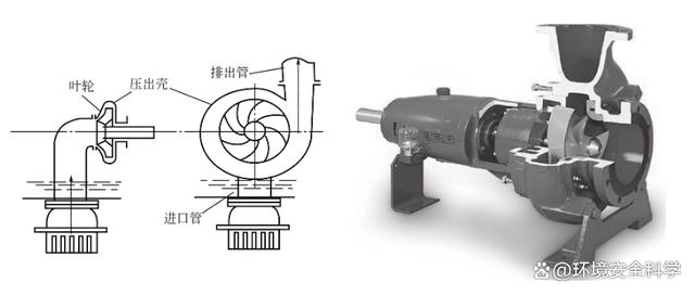 在化工生产中,经常遇到液态物料在管道内的输送,被输送的液态物料种类繁多,性质各异,温度、压力又有高低之分。高处物料可借其位能自动输往低处,但将液态物料由低处输往高处,由一处水平输往另一处,由低压处输往高压处,都要依靠泵这种设备去完成。充分认识被输送的液态物料的易燃性,正确选用和操作泵,对化工企业的安全生产与安全管理十分重要。 泵的种类较多,通常可分为离心泵、往复泵、旋转泵、流体作用泵等四类,其中离心泵在化工生产中应用最为普遍。下面就液体输送过程中各泵的工作特点进行危险性分析及提出安全控制要求。 1.离心泵的危险性分析及安全控制要求 离心泵是利用叶轮旋转而使液体产生离心力来工作的。离心泵在启动前,必须使泵壳和吸液管内充满液体,启动后,使泵轴带动叶轮和液体做高速旋转运动,液体在离心力的作用下,被甩向叶轮外缘,经蜗形泵壳的流道流入泵的压液管路。泵叶轮中心处,由于液体在离心力的作用下被甩出后形成真空,吸液池中的液体便在大气压力的作用下被压进泵壳内,叶轮通过不停地转动,使得液体在叶轮的作用下不断流入与流出,达到了输送目的。离心泵示意如图3-7所示。