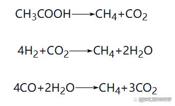 只有在乙酸浓度和系统中氢分压很低时上述反应才能顺利进行,因此,产氢产乙酸反应的顺利进行,常常需要后续产甲烷反应能及时将其主要的两种产物乙酸和H2消耗掉。主要的产氢产乙酸细菌多数是专性厌氧菌和兼性厌氧菌,包括互营杆菌属、互营单胞菌属、梭菌属、暗杆菌属等。 ③ 同型产乙酸菌。在“三阶段理论”的影响下,人们将注意力集中在产氢产乙酸菌与产甲烷菌等的互营作用上,并将其归入产甲烷相进行研究,却忽略了产酸菌、产氢产乙酸菌与同型乙酸菌之间的相互作用。值得一提的是,同型产乙酸菌在厌氧产酸过程中,具有特殊作用,它可以将二氧化碳和氢气转化为乙酸,在氢分压高时,它的作用增强;在氢分压低时,它的作用减弱,起到了一个平衡器的作用。但在一般厌氧消化器中,同型产乙酸菌所产的乙酸不到4%。尽管人们对自然生态系统中同型产乙酸菌对碳循环的重要贡献有较深入的认识,但却没能在人工厌氧产酸系统中充分发挥同型产乙酸菌的作用。 2)产甲烷菌(Methanogens) 产甲烷菌是产甲烷阶段的主要细菌,属于严格的厌氧菌,主要代谢产物是甲烷。主要可分为两大类:乙酸营养型产甲烷菌和H2营养型产甲烷菌。 产甲烷细菌的主要功能是将产氢产乙酸菌的产物——乙酸和H2/CO2转化为CH4和CO2,使厌氧消化过程得以顺利进行。一般来说,在自然界中,乙酸营养型产甲烷菌的种类较少,只有产甲烷八叠球菌(Methanosarcina)和产甲烷丝状菌(Methanothrix),但这两种产甲烷细菌在厌氧反应器中居多,特别是后者,因为在厌氧反应器中,乙酸是主要的产甲烷基质,一般来说,有70%左右的甲烷是来自乙酸的氧化分解。 典型的产甲烷反应有: