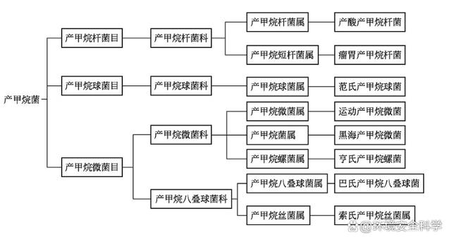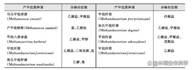 迄今为止,可分离鉴定的产甲烷菌达到70余种,分属于3个目,7个科,19个属。产甲烷菌有各种不同的形态,我们常见的产甲烷菌有产甲烷杆菌、产甲烷球菌、产甲烷螺旋菌、产甲烷八叠球菌四类。下表列示了几种主要产甲烷菌种属及其分解的底物。