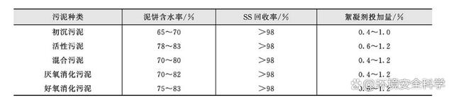 卧螺式离心机可以实现连续工作。在运转时,由一根静置的进料管将已添加絮凝剂的污泥送入转鼓,由于高速旋转和摩擦,物料在机器内部被加速并且沿转轴形成定厚度的污泥料液层。由于污泥颗粒和水的密度不一样,在高速旋转产生的离心力作用下,形成固液分离。由于转鼓和螺旋输送器有相对差转速,一般相差0.2%~3%,会对转鼓内壁的污泥固体产生一个向圆锥推进的输送力,在离心力的作用下使其在螺旋输送器的缓慢推动下到达转鼓的锥端,由转鼓周围的排出口连续飞散排出。液体则由堰口连续“溢流”排至转鼓外,汇集后排出脱水机。卧螺式离心机的脱水效果如表所列。