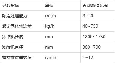 目前国外螺旋式浓缩机主要参数见表。 国外螺旋式浓缩机主要参数