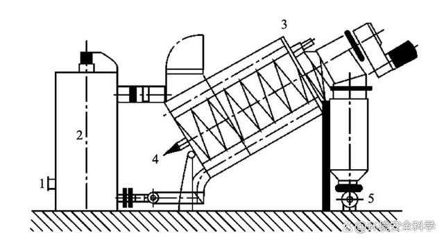 1一污泥进口;2一絮凝反应器;3一螺旋式浓缩机;4一滤液排出口;5一浓缩污泥泵