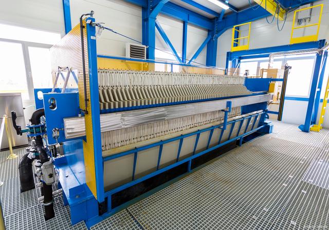 但是,板框压滤脱水机的缺陷也同样突出。相较于其他形式的脱水机,板框压滤脱水机最大的缺点就是占地面积较大。此外,板框压滤脱水机不能连续运行,处理量小,滤框给料口容易发生堵塞,滤饼也不易取出,同时在压滤过程中存在二次污染,导致操作间的工作环境较差,滤布消耗大,因此适合于中小型污泥脱水处理的场合,在欧美早期的污泥脱水项目上应用很多,而在国内大型污水处理厂中的实际应用较少。