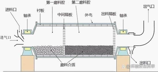 一段和两段流程相比较,一段磨矿流程的主要优点是:设备少,投资低,操作简单,不会因一个磨矿段停机影响到另一磨矿段的工作,停工损失少。但磨机的给矿粒度范围宽,合理装球困难,不易得到较细的最终产物,磨矿效益低。当要求最终产物最大粒度为0.2~0.15mm时,一般都采用一段磨矿流程。 两段磨矿的突出优点是能够得到较细的产品,能在不同磨矿段进行粗磨和细磨,特别适用于阶段处理。在大、中型工厂,当要求磨矿细度小于0.15mm时,采用两段磨矿较经济,且产品粒度组成均匀,过粉碎现象少。 (2)磨矿设备 选矿厂中广泛使用的磨矿设备是球磨机和棒磨机。 1)格子型球磨机 格子型球磨机的筒体用厚18~36mm的钢板卷制焊成,它的两端焊有铸钢制的法兰盘,筒体内装有衬板,用锰钢、铬钢、耐磨铸铁或橡胶等材料制成。