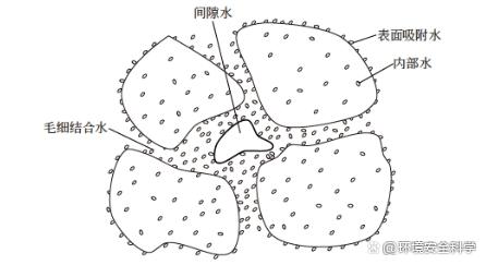 1.4.1含水率 污泥含水率是单位质量的污泥所含水分的质量分数。含水率是污泥最重要的物理性质,它决定了污泥的体积。污泥所含的水分通常分为间隙水(又称自由水)、毛细结合水、表面吸附水和内部水(见图1-2)。