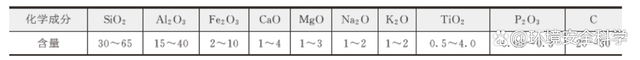 K2O、Na2O、P2O3等无机物,以及微量的稀有金属(如钛、钒、钴等)。煤矸石中的有机质随含煤量的增加而增高,它主要包括碳、氢、氧、氮和硫等。煤矸石的化学成分不稳定,不同地区的煤矸石成分也不一致且变化较大。表2-1为煤矸石的化学成分的大致范围。