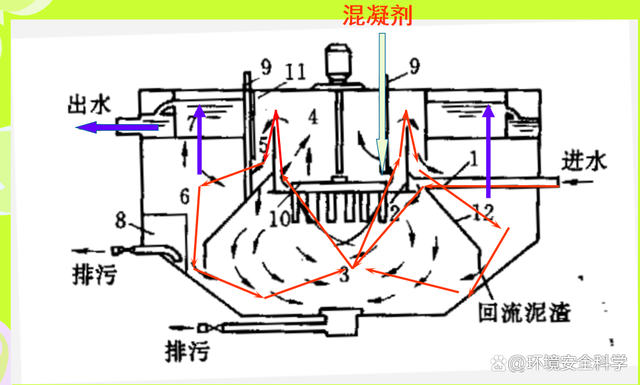 4.澄清池 (clarifier) 澄清池(clarifier) 混合、反应、沉降分离。 其优点是占地面积小,处理效果好,生产效率高,节省药剂用量。 缺点是对进水水质要求严格,设备结构复杂。 从基本原理上澄清池可分为两大类: 一类是悬浮泥渣型,有悬浮澄清池,脉冲澄清池; 另一类是泥渣循环型,有机械加速澄清池和水力循环加速澄池清。