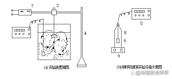 (1—模型曝气池;2—泵型叶轮;3—电动机; 4—电动机支架;5—溶解氧仪;6—溶解氧探头;7—稳压电源;8—广口瓶;9—电磁搅拌器)