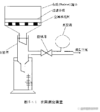 1.准备好待测泥样,泥样量一般为50~200mL,测得其含固量; 2.在金属承托网上铺上滤纸或滤布; 3.将泥样均匀倒在滤布或滤纸上,静置,直至漏斗底部不再有滤液流出,2min; 4.开启真空泵,至额定真空度(一般为380mmHg),开始记录滤液体积,每隔15s记录一次,直至漏斗污泥层出现裂缝,真空被破坏为止。在该过程中,应不断调节控制阀,使真空度保持恒定; 5.从滤纸上取出部分泥样,测其含固量从量筒内取出部分滤液,测其含固量,并测其温度; 6.将记录的过滤时间t除以对应的滤液体积V,得t/v值,作t/v--- V曲线。